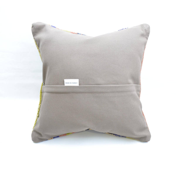 This Kilim pillow cover is made from a vintage Turkish Anatolian Kilim rug. Size: 16” x 16” Each kilim rug pillow cover is hand woven with 100% wool and is one of a kind. The back side of the pillow is a...
